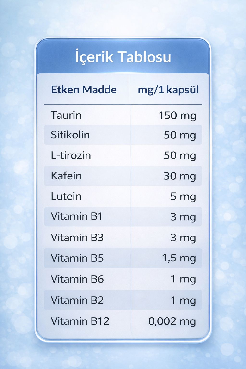 Vitajoy Brain PowerVitajoy Brain Power, L-tirozin, sitikolin, taurin, kafein, lutein ve B vitaminleri içeren bir takviye edici gıdadır. Formülünde yer alan B vitaminleri, sinir sisteminin normal fonksiyonuna katkıda bulunur. 30 Mg/Kapsül Kafein içerir. Günlük kullanım için tasarlanmış kapsül formu sayesinde pratik bir alternatif sunar.